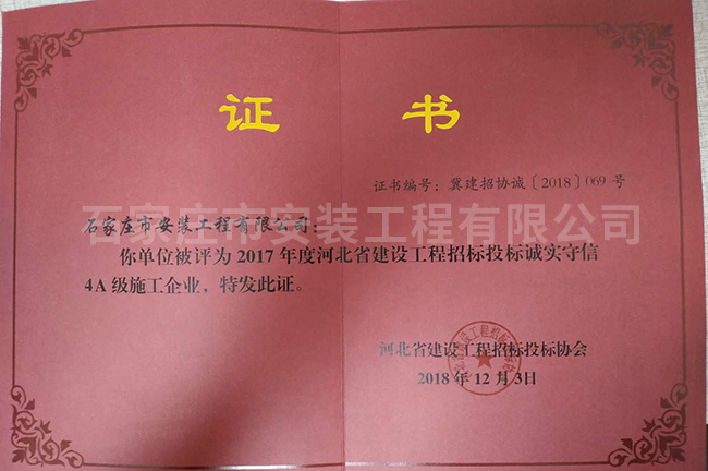 2017年度河北省建設工程招標投標誠實守信4A級施工企業