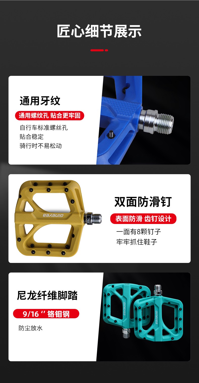 景曄腳踏M996山地自行車配件尼龍培林腳蹬寬面軸承騎行防滑腳踏板配件