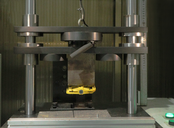 ▲自由落體沖擊測試,將15kg重物從400mm高度釋放,反復(fù)沖擊以檢驗(yàn)質(zhì)量