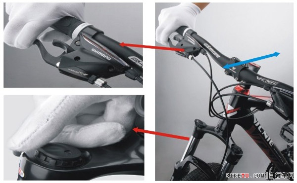 2.右手握緊前剎前后推動,感覺車頭: