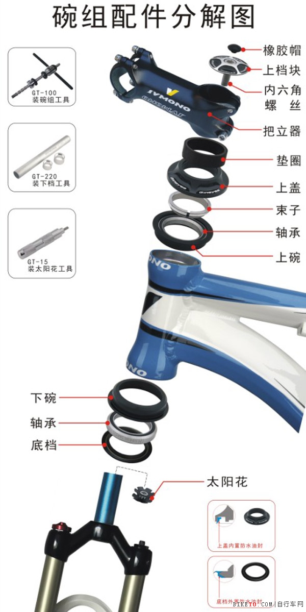 3.裝上下碗,根據各個廠家生產的車架頭管和公差可能會有偏差,在裝入上下碗的時候也有松緊,大部分都是需要用裝碗工具 ,如圖1。