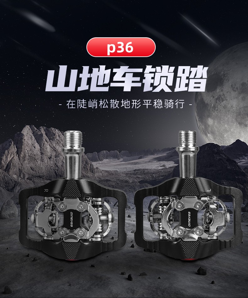 景曄山地自行車鎖踏P36鋁合金培林自鎖腳踏專業(yè)騎行鎖踏附扣片